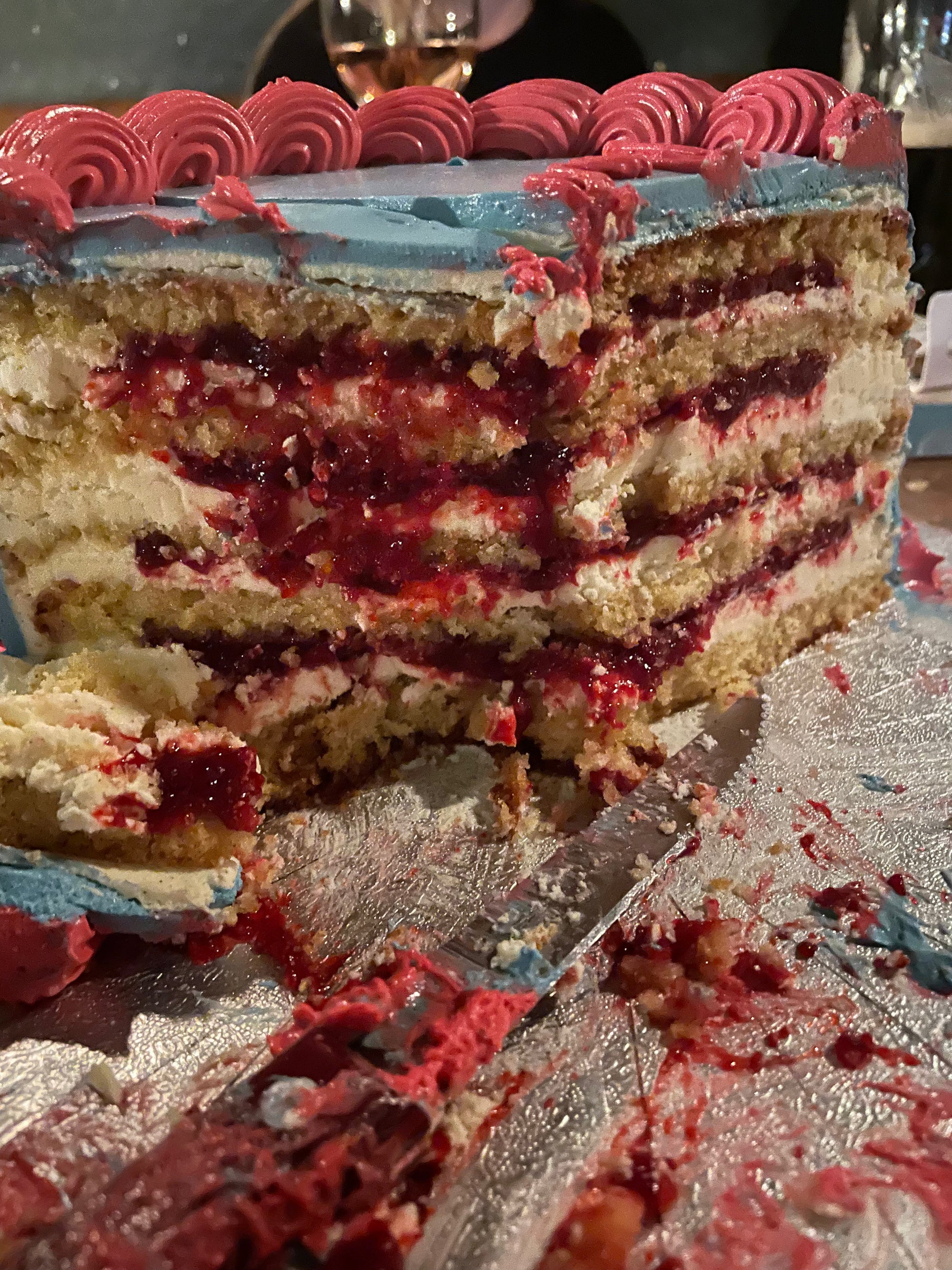 🧁 Vanilla cake with whipped white chocolate ganache & raspberry tonka jam